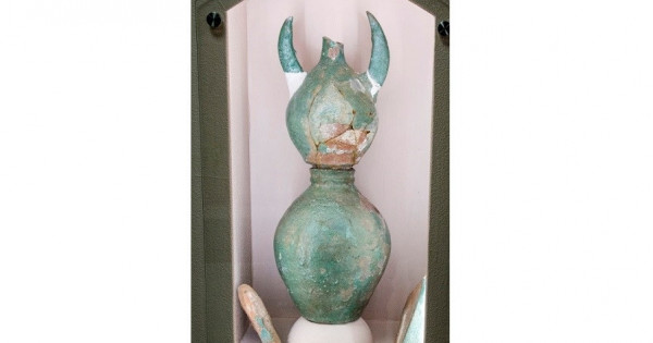 – Құбба бірнеше элементтен тұрады. Ең төменгі бөлігі күмбездің өзекше өтетін ойығын жабатын төңкерілген тостаған түрінде болған. Астыңғы бөлігінің кейбір бөлшектері түгел болмағандықтан, музейдің қор бөлімінде сақтаулы. Түсі көкшіл жасыл түсті, глазурьленген. Күмбез төбесіндегі ойыққа бірізді сызық арқылы ортасына ағаш өзекше кигізіліп, өзекшені мықты ұстап тұруы үшін ішіне алебастр ерітіндісі толтырылған. Ең жоғарғы бөлігі жоғалған. Үстіңгі бөлігі жарты ай екі мүйіз бейнесінде әшекейленген, – дейді.