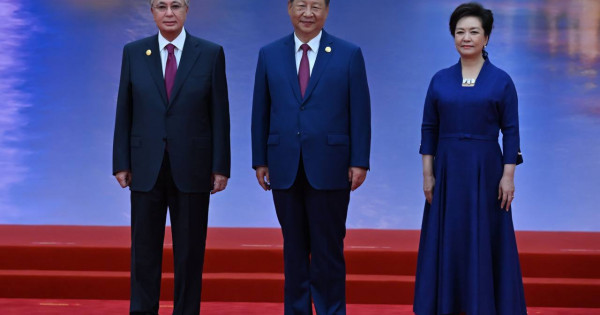 Мемлекет басшысын ҚХР Төрағасы Си Цзиньпин мен оның зайыбы Пэн Лиюань күтіп алды.