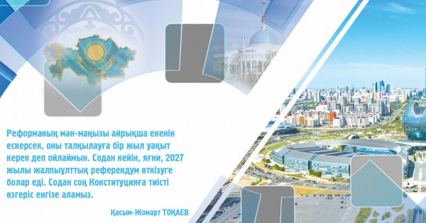 Әрине, оны өткізу үшін жүйенің өзге де элементтерін қайта жаңғырту керек, соның ішінде жүзеге асырылуына көп уақыт пен күш-жігер қажет болатын Парламент пен Үкімет өзара іс-әрекеті балансына қатысты. Президентке және оның командасына бұл маңызды жұмыста сәттілік тілейік.