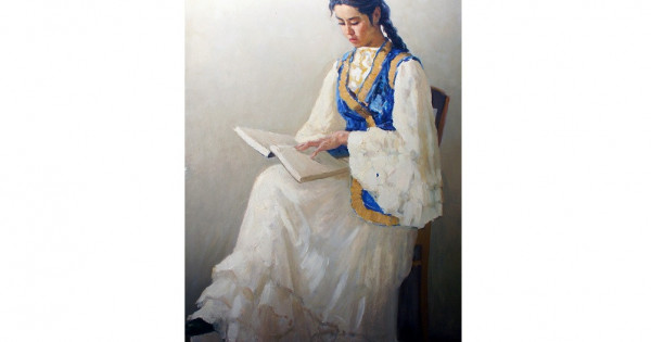 «Ұлттық бейнелеу өнерінің негізін қалаушылардың бірі, шебер кескіндемеші Молдахмет Кенбаевтың бір ғана «Кітап ұстаған қыз» туындысының өзінен сан алуан бояудың нәзік үйлесімін көреміз. Қылқалам шебері ақ түстің өзіне басқа бояуларды үстей отырып, жанды бейнелей білген. Мысалы, «Кітап ұстаған қыз» атты көркем суретте бейнеленген қазақ қызының ақ көйлегіне зер салып қарасақ, мұндағы сарғыш, көгілдір бояулармен астасып жатқан ақ түс суретшінің қайталанбас қолтаңбасын айқындап тұр. Жас бойжеткеннің үстіндегі көк қамзолының өзінен қызғылт, көк, жасыл бояулардың құйыла үйлесіп кеткенін аңғаруға болады. Үстелде кітап оқып отырған жас арудың тіп-тік бойы, ойлы жүзі, қалың қара шашы, тоқпақтай ұзын бұрымы, ұзын кірпіктері, үстіндегі ұлттық киімі – бәрі-бәрі бір-бірімен жарасымды үйлесіп, барша қазақ қыздарына ортақ көркем бейнені беріп тұр», дейді облыстық тарихи-өлкетану музейінің ғылыми қызметкері Нәзима Оташева.