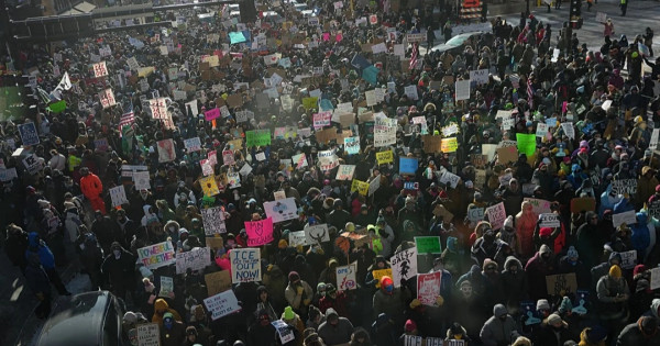 АҚШ-тың Миннеаполис қаласында мыңдаған адам -20 градус аязға қарамастан, президент Дональд Трамп әкімшілігі жүргізіп жатқан иммиграциялық репрессияларға қарсылық білдірген, деп хабарлайды Egemen.kz.