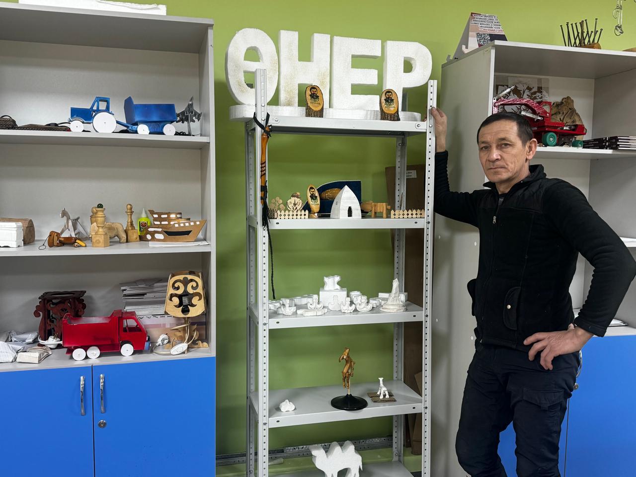 Виталийдің шеберханасында шебер қолынан шыққан небір шедевр бар. Ағаштан ойып жасалған тұрмыстық бұйымдар: домбыра, қобыз, бесік секілді. Қу тақтайға жан бітірген шебер ұстаздың шәкірттері көркем еңбек пәнінің сабағына қатысуға асығады. Өйткені әр сабағын бір-біріне ұқсамай өткізетіндігі ұстаз біліктілігі. «Ер балалар шаруаға икемді болсын деймін. Мектепте қамшы өріп, сап жасап үйренбесе, қазір мұндай тірлікті ауылдың өзінен көрмейміз, өкінішке орай», дейді шебер.
