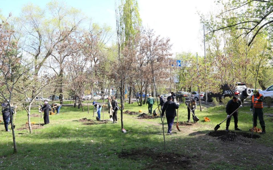 Қазірдің өзінде 6 мыңнан астам жасыл желек егілді: 2,6 мың ірі көлемді ағаш және 4 мың көшет.