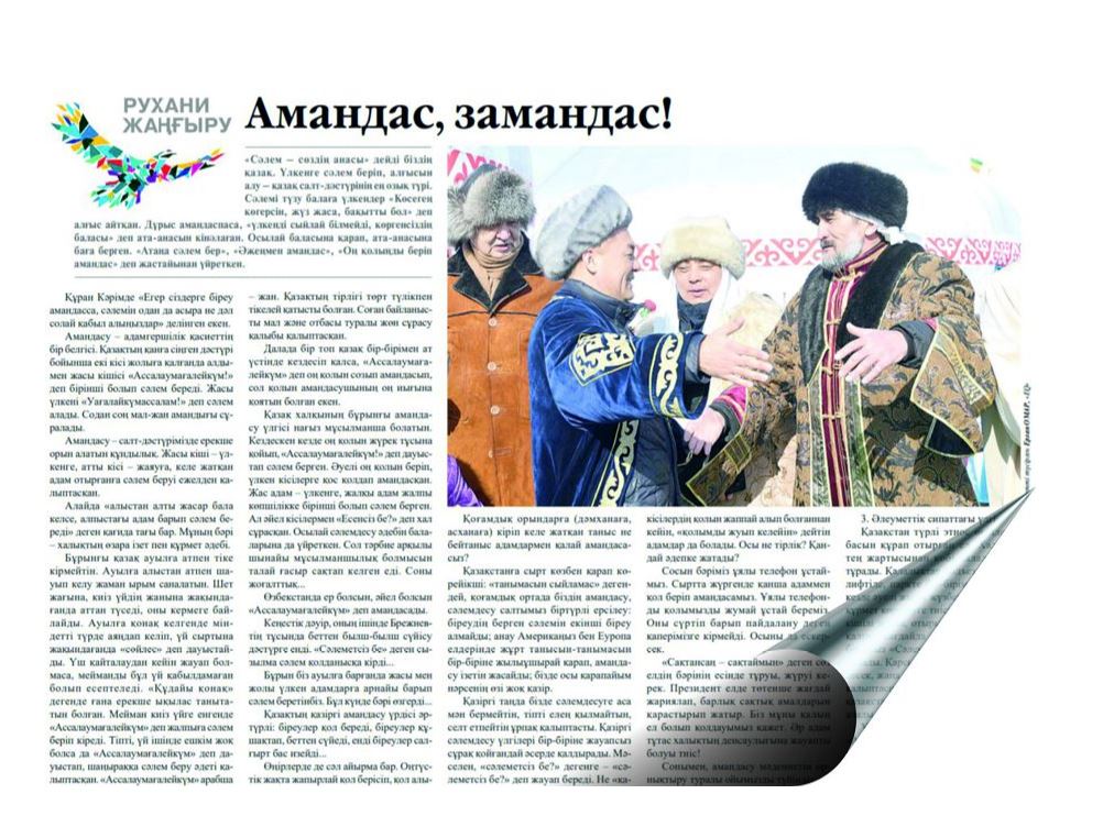 Сүйікті газетім «Еgemen Qazaqstan» қашанда игі істердің басында жүреді. Солардың қатарынан кейінгі сандарында жарияланған амандасу туралы мақалалар ойып орын алады, санасы барға ой салады. Мақала жазып, ой қозғағандарға мың да бір алғыс айтамын.