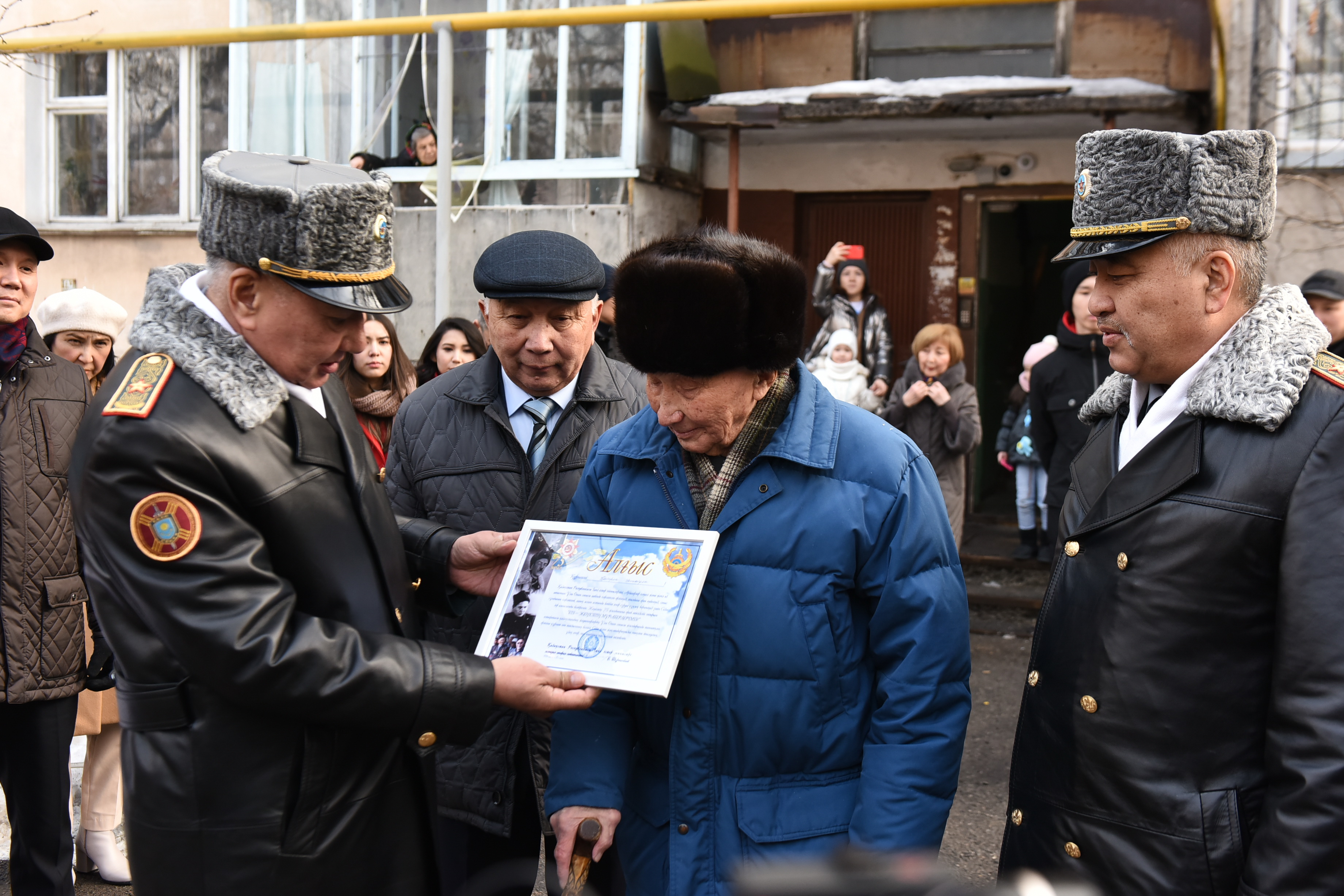 Жеңістің 75 жылдығына арналған «Біз – Жеңістің мұрагеріміз!» атты Тағзым эстафетасы аясында әйгілі Панфилов дивизиясының жауынгері, соғыс ардагері Қайырлы Жонқабаевтың үйінің ауласында салтанатты шеру ұйымдастырылды.
