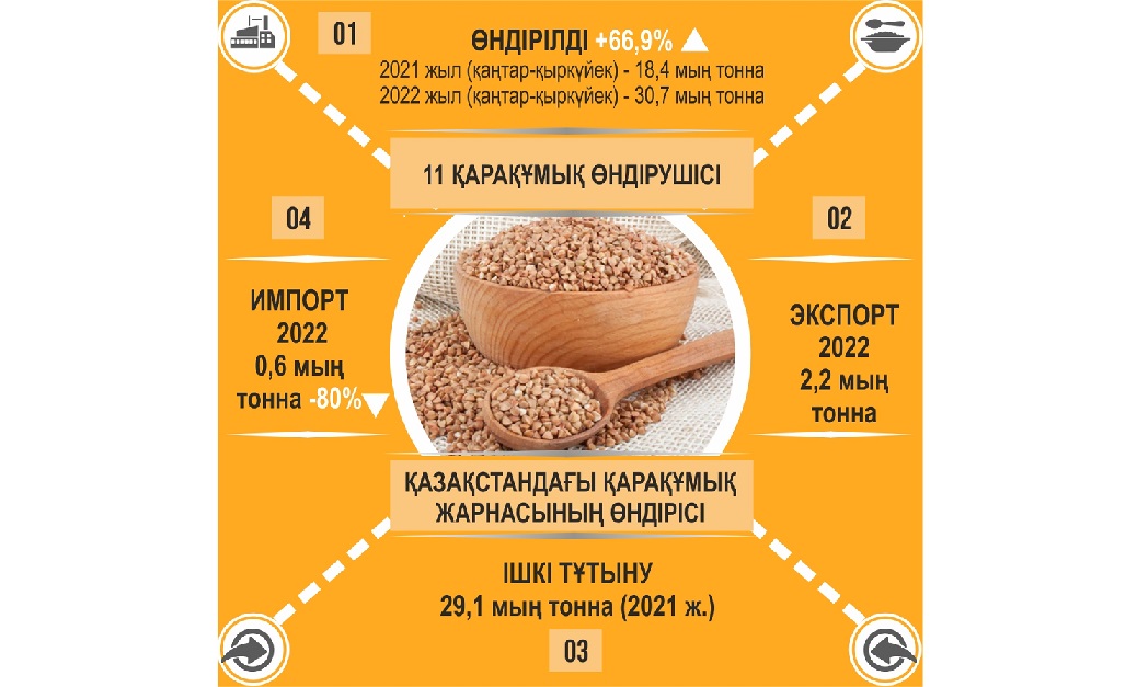 Қазақстандықтар қарақұмықтан тарықпайды. Өйткені біздің ел ішкі нарықты отандық қарақұмықпен толықтай қамтамасыз етті. Биыл өндіріс көлемі 66,9 пайызға өскен.